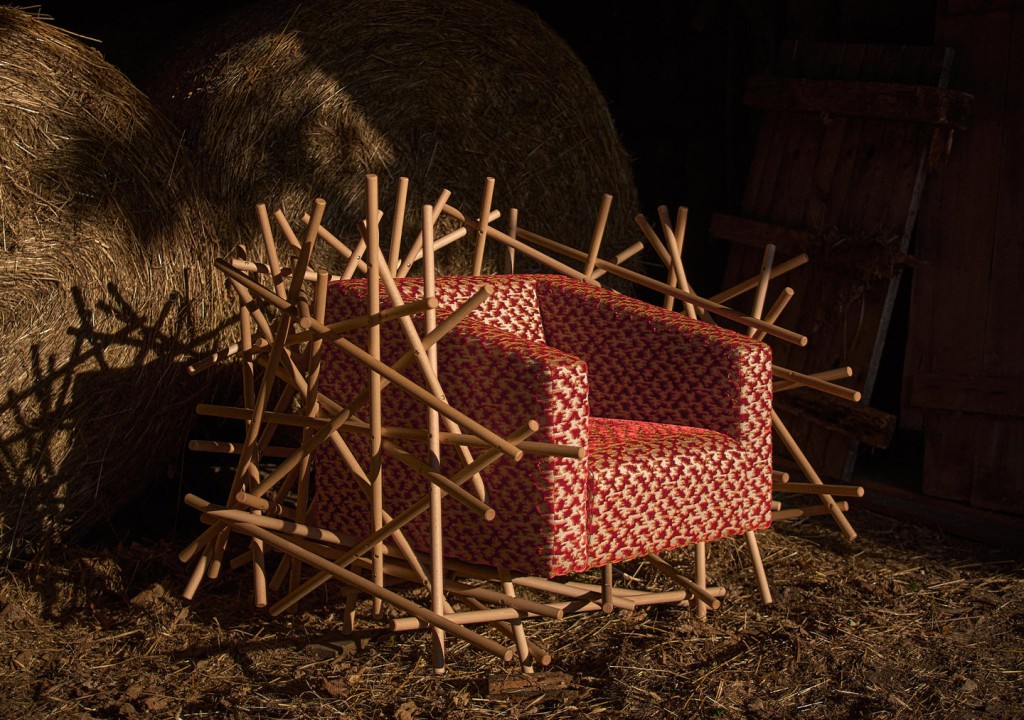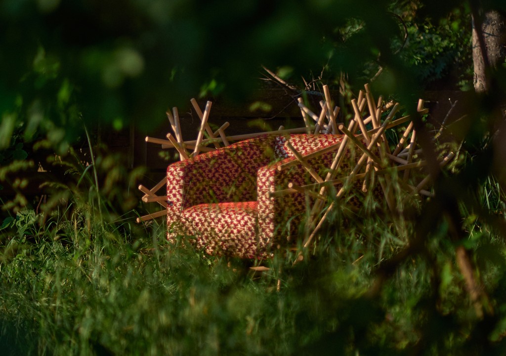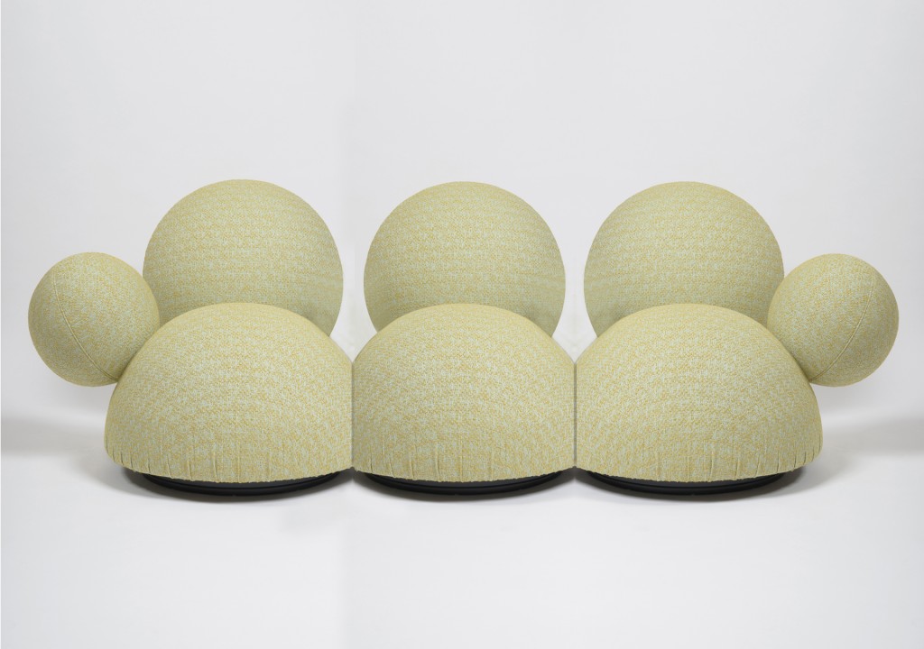 "Knitterplanet" is a sculpture that can be used as a sit-on-furniture. The sculpture is transformed by the fabric of a folded structure turning the topography of the surface into a surreal object. The artist calls into question the assumed rigidity of a system, whilst challenging the perceptive faculty of the viewer. "Knitterplanet" seeks to fold and distort the ordered space in a way that it breaks with strict geometry.